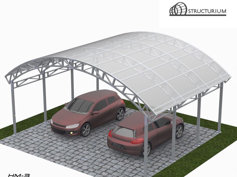 При производстве Навеса для машин односкатного используется профильная труба 80*80*3мм, 50*50*3мм, 50*25*2мм. Покрытие крыши – прозрачный сотовый поликарбонат 10мм. Покраска полимерная порошковая с предварительным нанесением цинкосодержащего грунта, цвет серый.