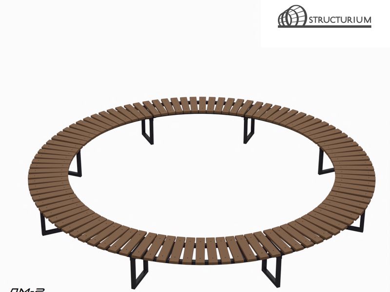 При производстве Скамьи круглой используется профильная труба 40*25*2мм. Материал сидения скамейки – доска 90*30мм обработанная атмосферостойким покрытием. Покраска полимерная порошковая с предварительным нанесением цинкосодержащего грунта, цвет черный.